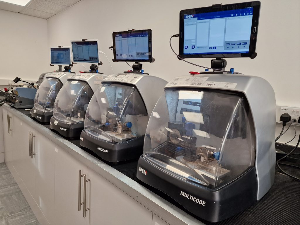 After the workshop refit, we now have even more space for key machines and even a laser engraving machine we use for marking our master suite differ keys. This machine replaces or key stampers which not only makes the job quicker but also a lot quieter at great relief for everyone in the workshop. As well as our AVANTCODE we have four MULTICODES and a SUPRACODE which are all cutting keys for customer orders most of the day.